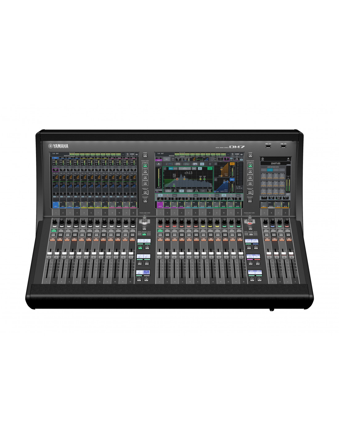 CONSOLA DIGITAL DM7 CON DANTE, 32 ENTRADAS / 16 SALIDAS, CANALES DE MEZCLA DE ENTRADA 120 MONO, PANTALLAS: 2 × MULTITÁCTILES DE 12,1” Y 1 × MULTITÁCTIL DE 7” DANTE 144 ENTRADAS / 144 SALIDAS