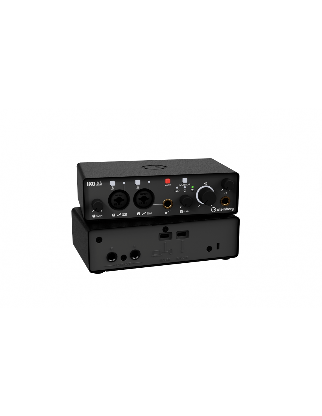 INTERFAZ DE AUDIO IXO22 NEGRA, INTERFAZ DE AUDIO USB 2.0 DE 24 BITS/192 KHZ CON E/S ANALÓGICAS DE 2 X 2, DOS ENTRADAS COMBINADAS CON BOTÓN DE SILENCIO, PREAMPLIFICADORES DE MICRÓFONO DE CLASE A Y ALIMENTACIÓN 48V, MÁS UNA ENTRADA HI-Z.